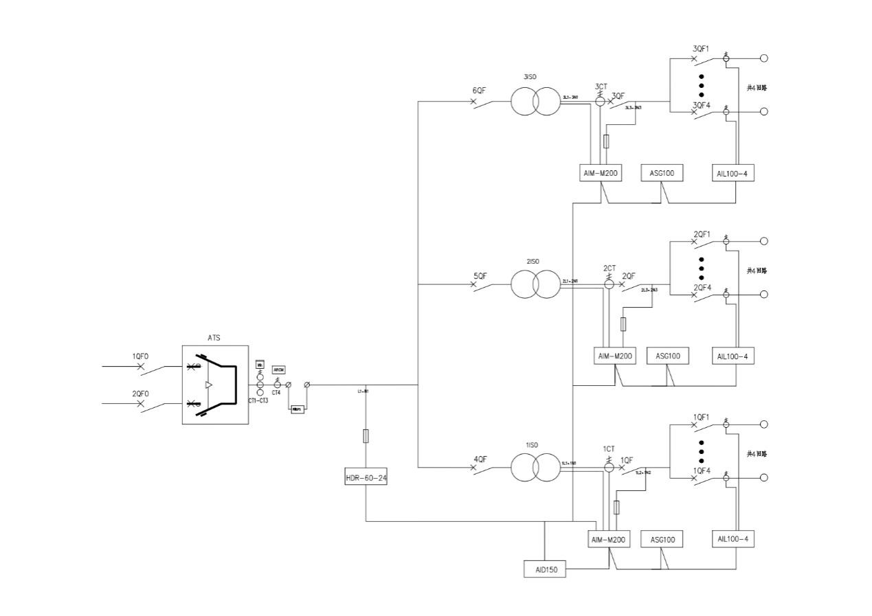 絕緣監測裝置的任務是監測相線與大地之間的絕緣電阻,當阻值低于設定值時發出報警提示。絕緣監測裝置裝于隔離變壓器二次側出線與大地之間,在系統中施加測量電流,當系統絕緣電阻下降時,發出報警信號。AIM-M10型絕緣監測儀自帶一路24V直流電源輸出,可為AID150型集中報警顯示儀供電。