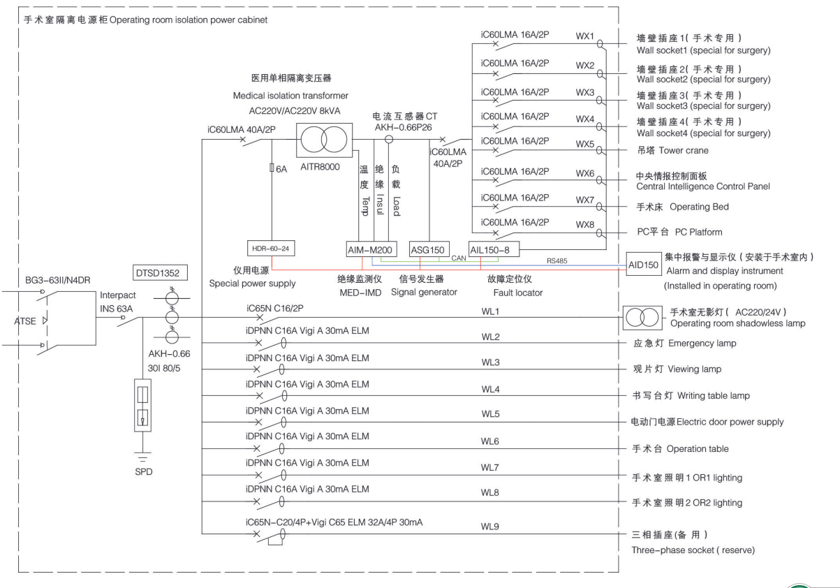 在醫療場所,所有的工作都集中在病人和他們的康復上。即使是短暫的斷電會危及診斷和治療,因而影響患者的健康。為此,對于電源可靠性的要求是非常嚴格的,所以醫院電氣安全可靠也引起來業界的重視。其中關于ICU、手術室等重要場合的配電安全可靠越來越引起業界重視。尤其是關于IT隔離電源的設置。GB16895.24-2005/IEC60364-7-710:2002標準中規定,在醫療領域2類醫療場所內,用于維持生命的、外科手術的和其他位于“患者區域”內的醫療電器設備和系統的供電回路應選用帶絕緣監視的醫療IT系統供電。