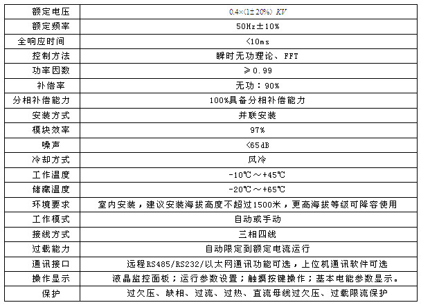 適用于0.4KV系統(tǒng)中動(dòng)態(tài)補(bǔ)償無(wú)功和諧波電流。
