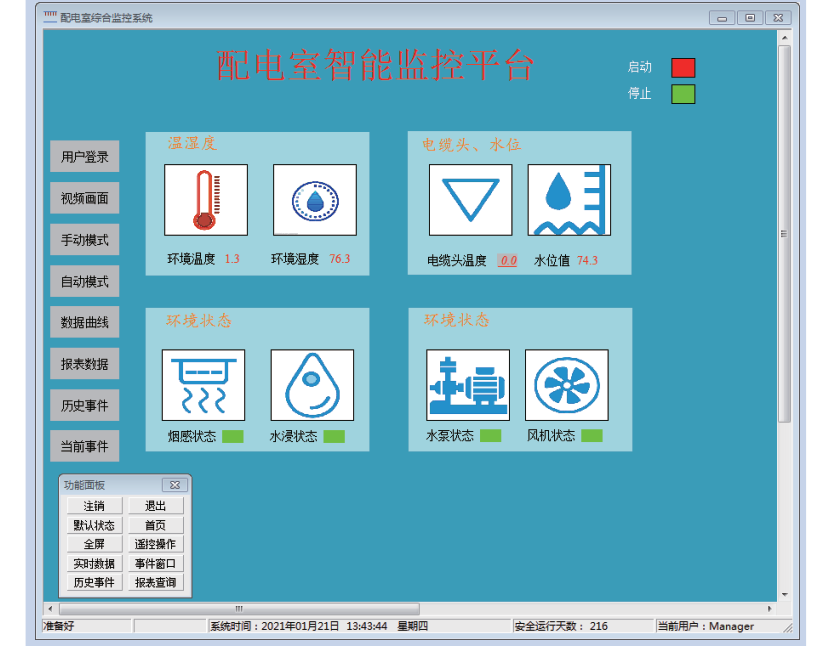 系統把環境、視頻、通風、照明、安全防范、消防、一次設備輔助監控等所有監控量在系統主界面上進行一體化顯示和控制,避免各系統孤立顯示和控制。