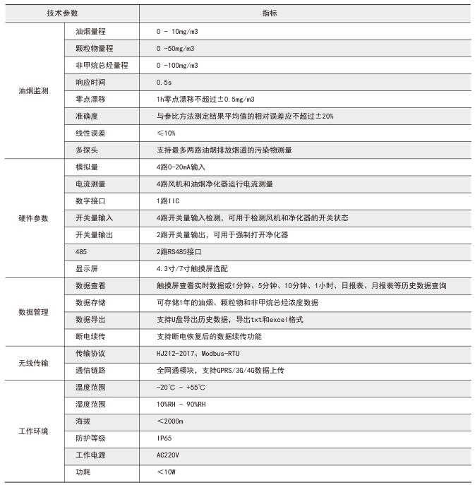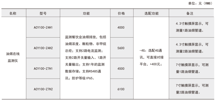 ACY100型飲食業油煙濃度在線監控儀是針對飲食業廚房油煙排放場合而設計的,由油煙探頭、傳感器、控制板和顯示屏等部分組成,用于監控油煙、顆粒物和非甲烷總烴等污染物的排放狀況和過程參數,以及風機和凈化器的電流和開關狀態等,并可通 過RS232/485或4G等方式進行數據傳輸的設備。監控儀支持最多兩路油煙排放煙道的污染物測量。