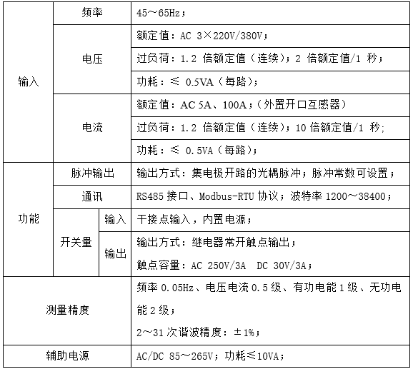 主要技術參數: