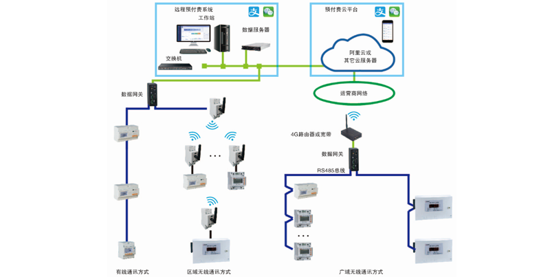 支持預付費功能??稍O置基礎金額,供免費使用;可對剩余金額進行四級報警:余額不足報警(一級)、預跳閘報警(二級)、欠費報警(三級)、達到賒欠上限(四級)報警。每級報警都會導致電表背光常亮,預跳閘報警 跳閘方式可設置為不跳閘、跳閘后自動合閘以及跳閘后不合閘等,跳閘后可通過按鍵自行合閘,達到賒欠上限后電表跳閘,此時只有繳費后才能繼續合閘使用。
