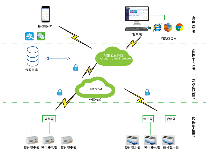 抄表信息通過網關實時上傳到云平臺,快速便捷,免去人工抄表;財務集中管理,電量零售躉賣,支持一戶一電價,一戶一水價。